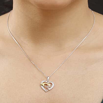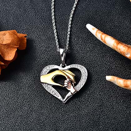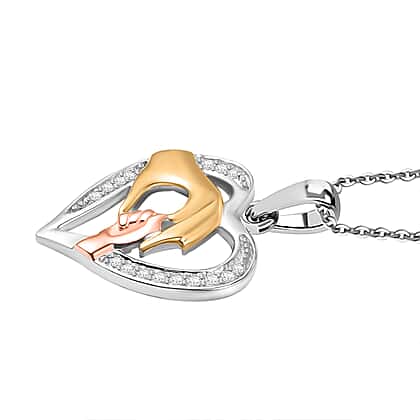 White Zircon Pendant with Chain (Size 20) in 18K Vermeil Rose & Yellow Gold Plated and Rhodium Overlay Sterling Silver 0.16 Ct.