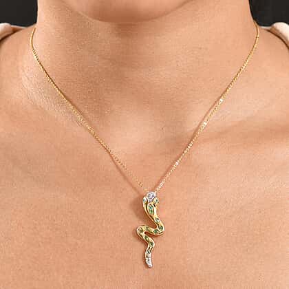 White Zircon Zambian Emerald Snake Pendant with Chain (Size 20) in Yellow Gold Plating Sterling Silver