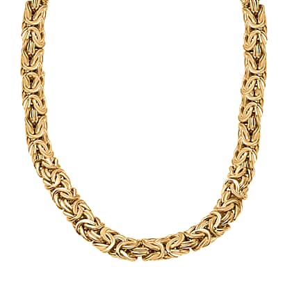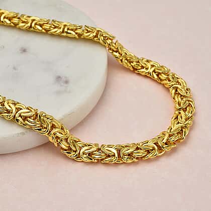 18K Yellow Gold Overlay Plating Sterling Silver Byzantine Necklace (Size - 20), Silver Wt. 34.5 Gms