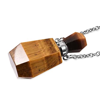 - The pendant features a perfume bottle design and is carved out Yellow Tiger's Eye
