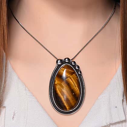 Yellow Tigers Eye Pear Necklace (Size - 24 - 4 Ext) 50.00 Ct.