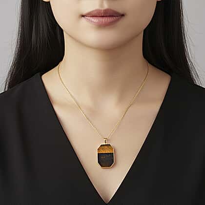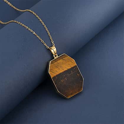 Yellow Tigers Eye Pendant with Chain (Size 20-2 Ext) in Yellow Gold Tone 20.00 Ct.