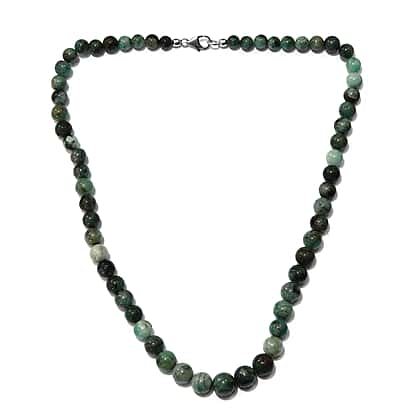 Zambian Emerald Beaded Necklace (Size 20) in Platinum Overlay Sterling Silver 245 Ct.