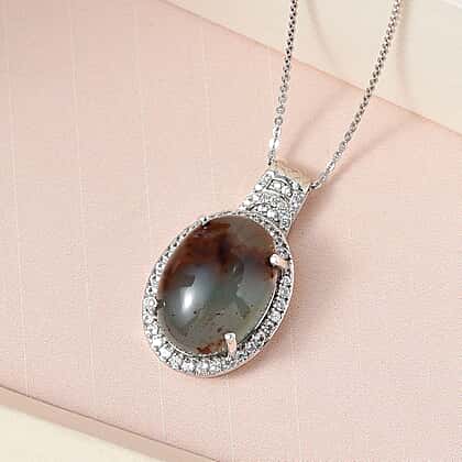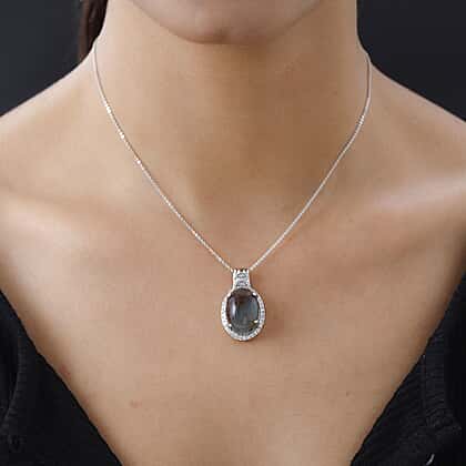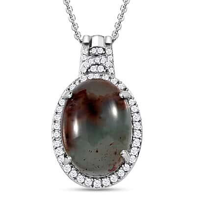 Zimbaprase and Natural Zircon Pendant with Chain (Size-20) in Platinum Overlay Sterling Silver 15.83 Ct.