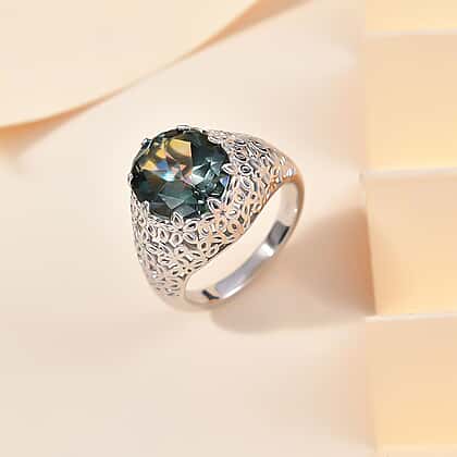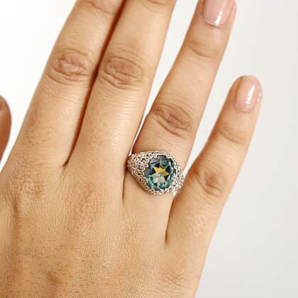 Neptine Mystic Quartz Solitaire Filligree Ring in Platinum Bond 4.24 Ct