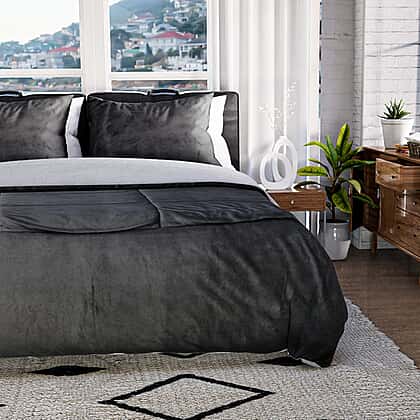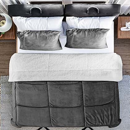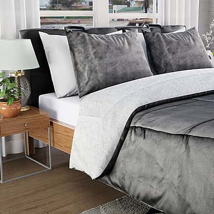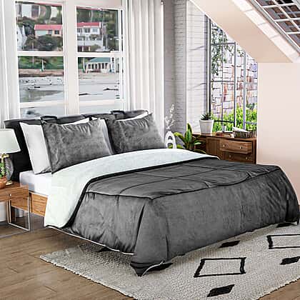 NEW - Set Of 3 Sherpa Comforter (Size Double) & 2 Pillow Cases (Size 75x50cm) - Grey