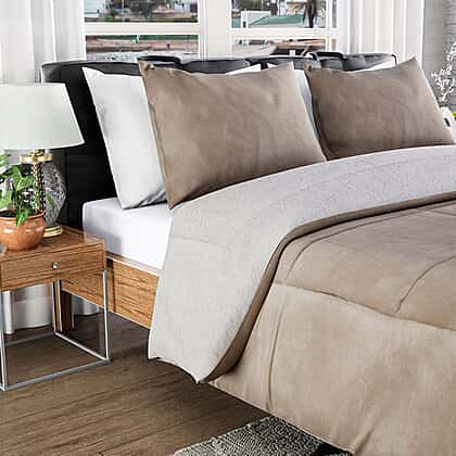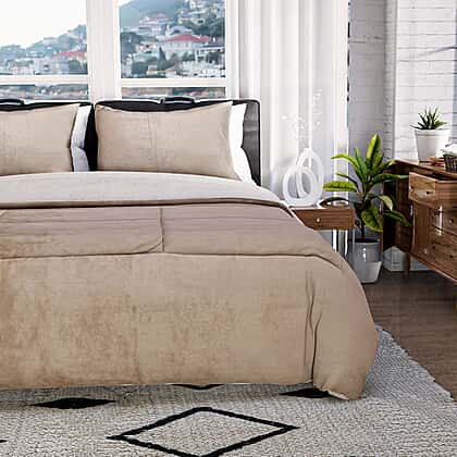 NEW - Sherpa Comforter (Size UK Double 200cm x 200cm) & 2 Pillow Cases (Size 75x50cm) 250GSM - Ivory