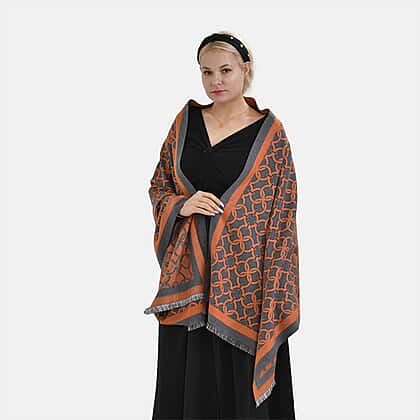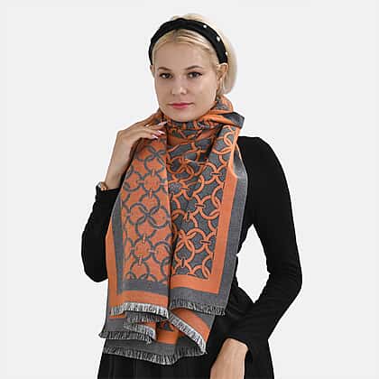 New Arrival at Ideal World - Lattice Shawl (Size 180x1 cm) - Orange - Green