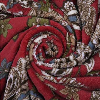 Luxurious Super Soft Floral and Paisley Pattern Flannel Blanket - Wine Red and Multi