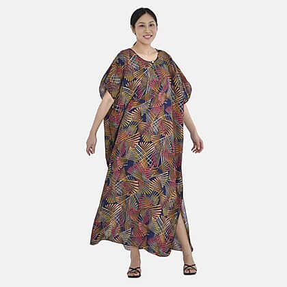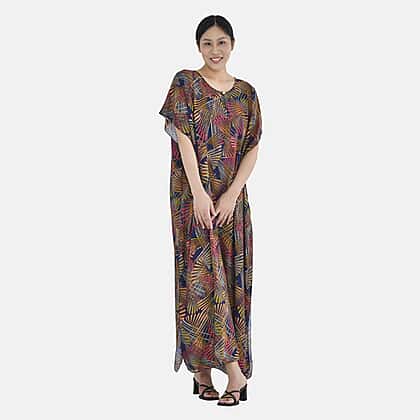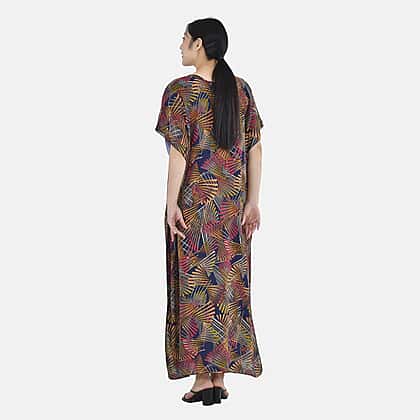 Close Out - TAMSY 100% Viscose Maxi Kaftan Dress (One Size, Fit 8-20 ) - Black and Multi