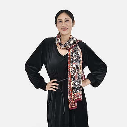 LA MAREY 100% Mulberry Silk Indian Pattern Scarf (Size 168x53 cm) - Black and Multi