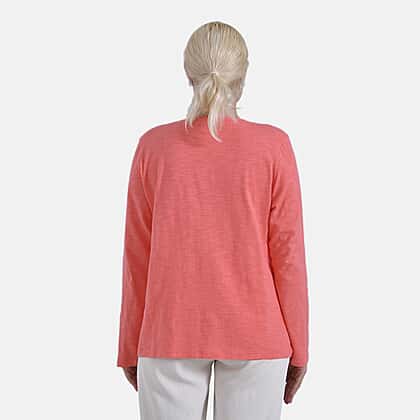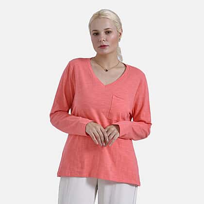 Add a pop of playful colour to your wardrobe with the La Marey Cotton Patterned Top in coral. Crafted from 100% premium cotton, this long sleeve top is ultra-soft, comfortable, and kind to sensitive skin—perfect for all-day comfort. The flattering V-neckline enhances your silhouette, while the chest pocket adds a touch of casual charm and everyday practicality. With its relaxed fit and lightweight design, it’s easy to style and ideal for layering or wearing solo. The vibrant orange hue and subtle pattern make it a standout choice for pairing with jeans, shorts, or skirts for effortless, sunny-day dressing.