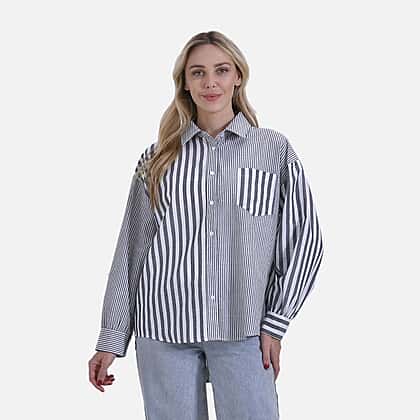 For those who love understated sophistication, this La Marey relaxed fit long sleeve striped shirt is a wardrobe essential. Its grey and white stripes bring a touch of minimal charm, while the oversized cut creates an effortlessly modern silhouette. Crafted from a quality blend of polyester, cotton, and viscose, it offers both softness and durability. Details like the pointed collar, front buttons, and gently gathered cuffs give it a polished edge. Perfect to wear on its own or layered over a simple top, it transitions seamlessly from casual brunches to smart-casual evenings.