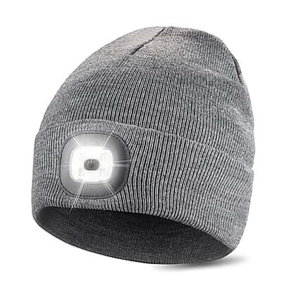 Keep cosy and visible with this grey adult beanie hat featuring a built-in head torch. Made from soft, insulating 100% acrylic, it feels comfortable on chilly days while providing handy hands-free lighting for walks, travel, camping or late-night tasks. The LED torch sits securely at the front and offers bright, dependable light whenever needed. Whether you’re out with the dog, working outdoors or simply want extra visibility, this clever beanie brings warmth, comfort and convenience together in one practical everyday essential.