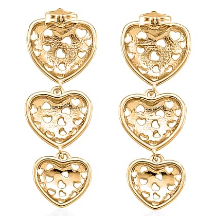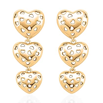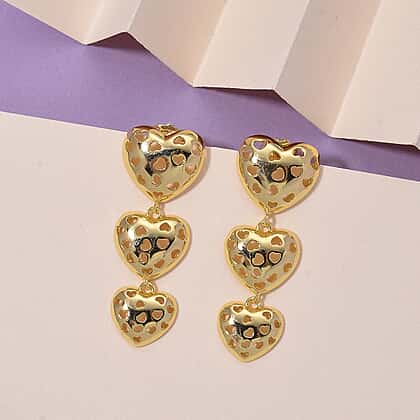 The designer Heart-Inspired earrings can not only elevate your entire look but also make your outfits look expensive. A blend of style and emotion, they feature a trio of heart dangles adorned with tiny, heart-shaped cut-out detailing. Crafted in pure brass, polished in yellow gold colour, these earrings look adorable. It has a trendy, oversized silhouette and can help frame one's face perfectly. These gold-tone earrings embody love and romance, making for a perfect choice for a date night. These earrings simply are playful and charming, ideal for the cool crowd out there!