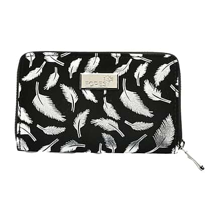 Gold Foil Leaf Print Zip-Around Wallet - Silver