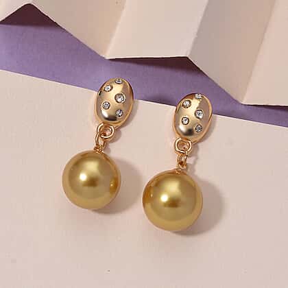 Golden Shell Pearl & Austrian White Crystal Earring with Push Back in Yellow Gold Plated 30.20 Ct.