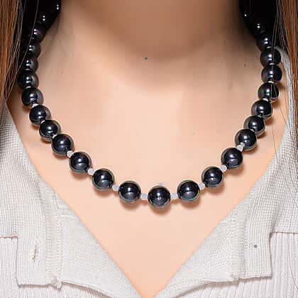 Peacock Color Shell Pearl & White Crystal Quartz Necklace (Size 20 - 2 Ext) 349.00 Ct.