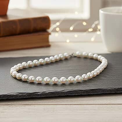 White Shell Pearl & Green Aventurine Necklace (Size 20 - 2 Ext) 349.00 Ct.