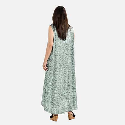 Tamsy 100% Viscose Dot Printed Umbrella Midi Dress (One Size) - Blue