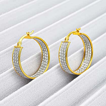 New York Close Out - Designer Diamond Cut Gold Overlay Sterling Silver Hoop Earrings