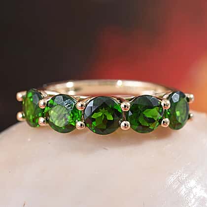 New York Close Out- 14K Yellow Gold AAAA Chrome Diopside (Rnd) Five Stone Ring 2.850 Ct.