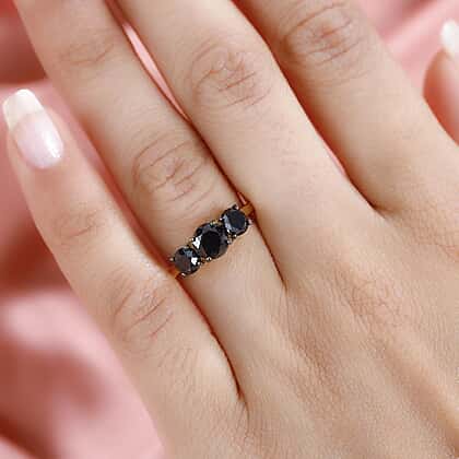 Black Diamond Trilogy Ring in 18K Yellow Gold Vermeil Sterling Silver
