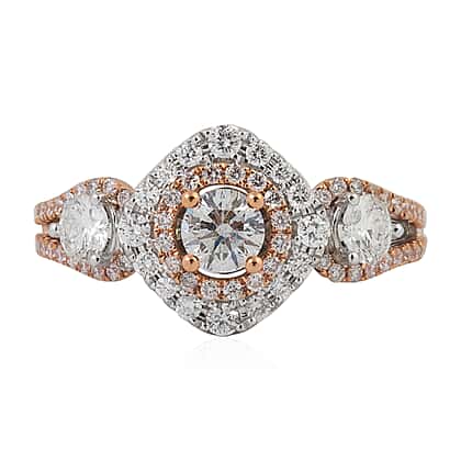 1.25 Carat Diamond Halo Ring in 14K Rose and White Gold 5 Grams i1-i2 GH