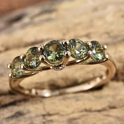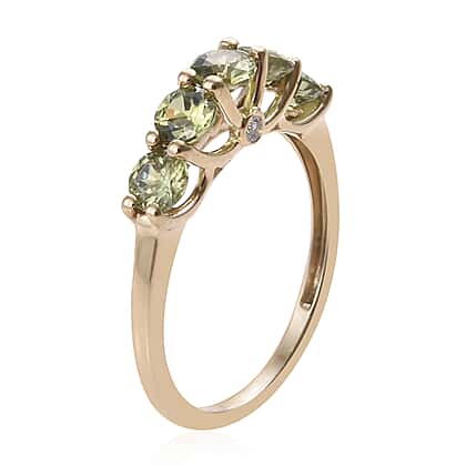 New York Close Out Deal 1.53 Ct AA Demantoid Garnet and Diamond 7 Stone Ring in 14K Gold