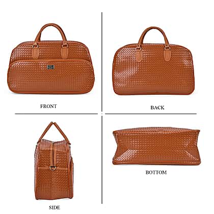 Passage Leatherette Woven Pattern Travel Crossbody Bag with Handle Drop - Tan