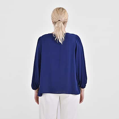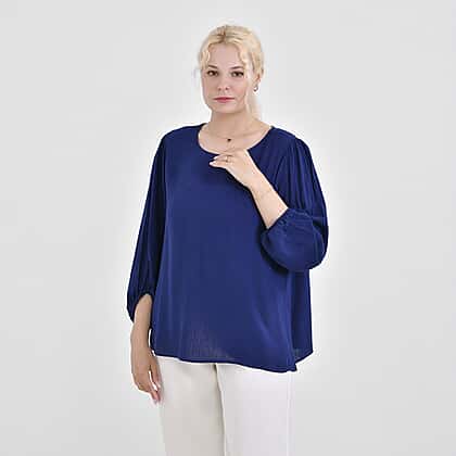 Update your wardrobe with the Tamsy relaxed fit blouse, offering a blend of effortless elegance and everyday comfort. Designed with a round neckline and balloon sleeves, it drapes beautifully for a flattering and easy-to-wear silhouette. The gathered cuffs add a refined touch, while the 100% viscose fabric ensures a light and soft feel. In a classic navy shade, this blouse is a must addition that works well across seasons. Whether worn alone or layered, it complements jeans, skirts, or trousers for a versatile and polished look.