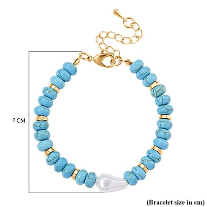 Blue Howlite & White Shell Pearl Bracelet (Size 7.5 - 2) 70.00 Ct.