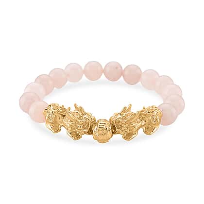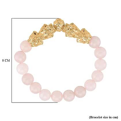 Rose Quartz Beads & Pixiu Bracelet (Size 7 Stretchable) in Yellow Gold Plated 150.00 Ct.