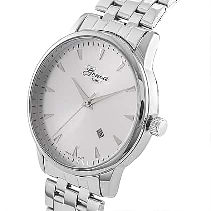 CLASSIC GENOA TIME V2 Miyota GM12 Japan Movt. 3ATM Water Resistant White Dial Watch with Silver Colour Stainless Steel Strap