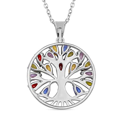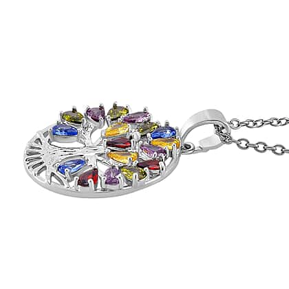 Multi Color Cubic Zirconia Tree of Life Necklace (Size - 20) 6.00 Ct.