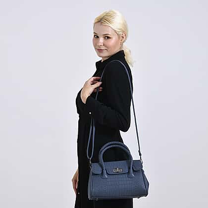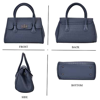 Bring a cool sophistication to your accessories with this Elegant Croc Pattern Crossbody Bag in deep blue. Designed with a structured silhouette and refined braided top handle, it’s a smart choice for everyday styling. The leatherette outer and turn-lock closure deliver a sleek, polished look, while the interior compartments and zipped exterior pockets keep everything neatly in place. A soft polyester lining enhances the feel, and the adjustable strap offers hands-free convenience. Finished with protective bottom studs, this crossbody transitions seamlessly from errands to evenings out with a modern edge that’s practical and stylish.
