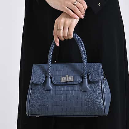 Elegant Croc Pattern Crossbody Bag with Braided Top Handle - Blue