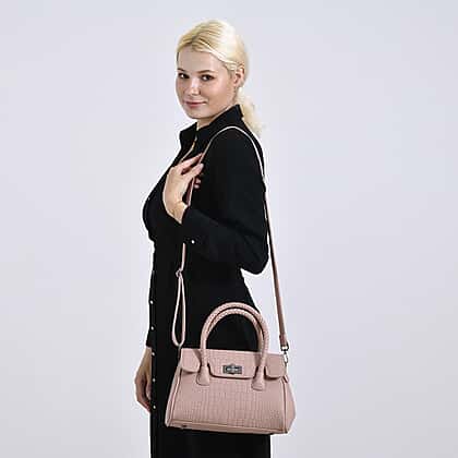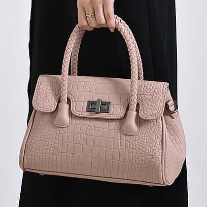 Inject a soft, feminine flair into your accessories with this pink crossbody bag, styled with a braided top handle and croc-effect texture. The gentle hue pairs beautifully with pastels and monochrome outfits alike. Crafted from leatherette with a smooth polyester lining, the bag includes thoughtfully placed pockets inside and out for effortless organisation. A turn-lock closure ensures your items stay secure, while the detachable strap lets you wear it crossbody or carry it by hand. Ideal for brunch, errands or evening catch-ups, it’s a versatile piece that balances fashion and functionality with charm.