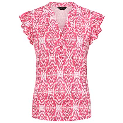 Bring bold elegance to your wardrobe with the Emreco Ikat Print Inspired V-Neck Flutter Sleeve Top. Featuring an eye-catching pink and white pattern, this top combines comfort and statement style with ease. Crafted from a soft and stretchy blend of 96% viscose and 4% elastane, it provides a breathable feel with a flattering fit. The flutter sleeves lend a delicate, floaty silhouette, while the V-neckline adds a feminine touch. Whether you pair it with denim for a laid-back look or trousers for the office, this vibrant top is your go-to for instant polish and personality.