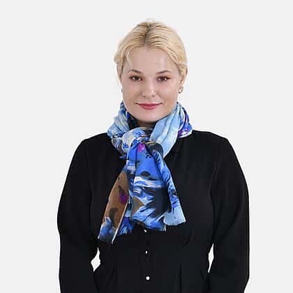 La Marey 100% MERINO Wool Scarf (size 61cm x 190 cm) - Blue With Multi Color Pattern.