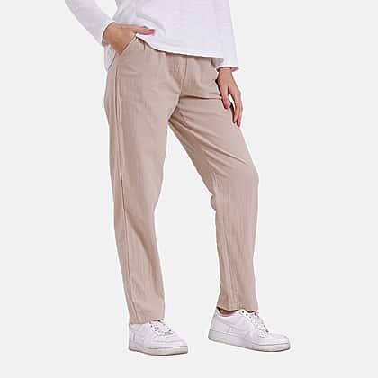Neutral and easy to style, La Marey’s beige cotton trousers are a wardrobe essential. Made from 100% natural cotton, these capris promise soft comfort and a neat fit thanks to the elasticated waist. The understated shade pairs beautifully with patterned or plain tops alike, making them perfect for mixing and matching. Two side pockets add convenience, ideal for slipping in your phone or keys. An effortless choice for daily wear that doesn’t compromise on comfort or practicality.