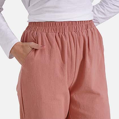 Brighten up your casual wear with La Marey’s soft pink cotton trousers. Thoughtfully designed with comfort in mind, these capris feature a smooth elastic waistband and breathable 100% cotton fabric. The pretty blush tone adds a feminine finish to your daywear, while practical side pockets keep your daily essentials close. Whether you're out for errands or enjoying a quiet day in, these trousers offer charm and function in equal measure.