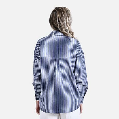 Stay chic and comfortable with the La Marey striped pattern shirt in subtle grey and white tones. Made from a premium 50/50 blend of polyester and cotton, it combines breathability with a soft, smooth texture. The full sleeves and collared neckline give it a polished yet relaxed silhouette, while the single front pocket and button-down front add a practical touch. Its neutral stripes make it versatile enough to style with denim, trousers, or skirts for any occasion — effortlessly balancing comfort and sophistication.