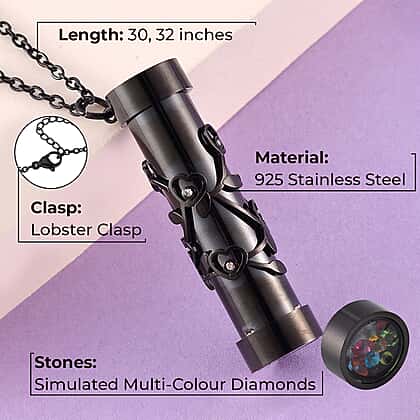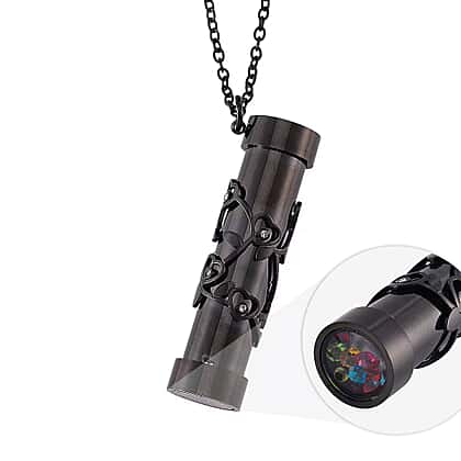 Mysterious and bold, this kaleidoscope-style multi-coloured cubic zirconia necklace in a striking black tone is designed to make a statement. Featuring multi-coloured cubic zirconia that shift and sparkle with movement, this pendant creates a dynamic and eye-catching effect. The sleek black finish enhances the depth of the design, while intricate floral accents bring a touch of elegance. With a 30-inch chain and a 2-inch extender, this piece offers both comfort and versatility. Secured with a lobster clasp, it’s the perfect blend of edgy sophistication and timeless beauty, ideal for those who love jewellery with a unique twist.