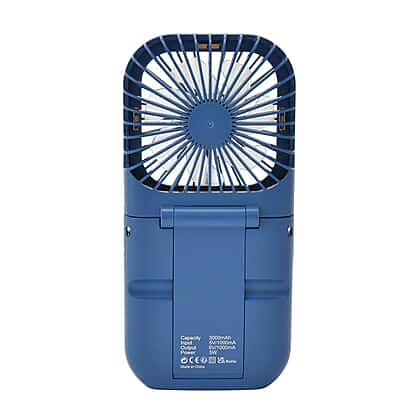 Foldable & Rechargable 3 Speed Fan, Phone Holder, Power Bank with Neck Strap (Works upto 8hrs)- Navy