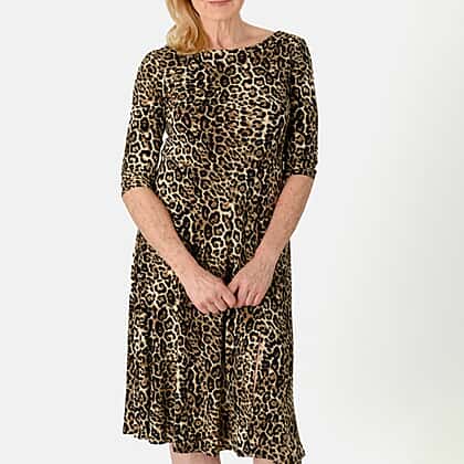 Closeout Deal - Leopard Print Midi Dress (Size - 8) - Brown