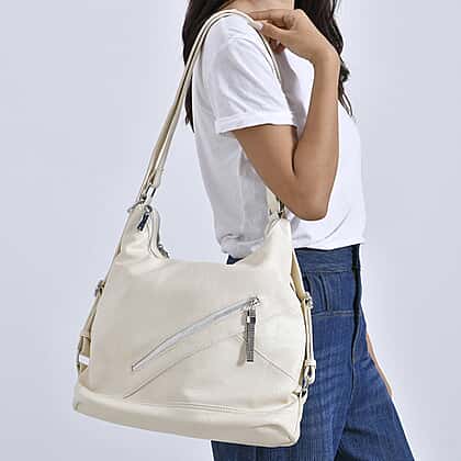3 in 1 Solid Versatile Styling Crossbody, Shoulder, and Tote Bag (Size 33x13x36 cm) - White