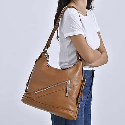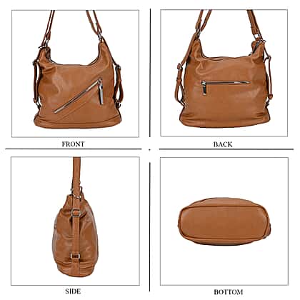 Elevate your everyday style with this tan solid crossbody bag, designed for practicality and elegance. Made from premium faux leather with a durable polyester lining, this versatile 3-in-1 bag combines sophistication with functionality. It features two secure zipped exterior pockets for quick access to essentials, along with one zipped and one slip pocket inside for organised storage. Measuring 33.5x13.5x36.5cm, it offers ample space while remaining lightweight and comfortable. The adjustable crossbody strap ensures a perfect fit, making it ideal for daily errands or outings. This bag is the perfect blend of style, convenience, and durability for any occasion.