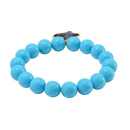 Sleeping Beauty Turquoise Colour Shell Pearl & Abalone Shell Butterfly Bracelet (Size 7 Stretchable) 198.00 Ct.