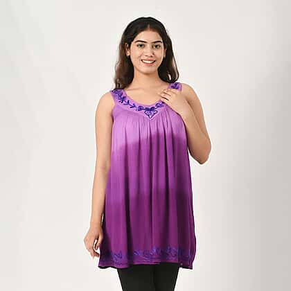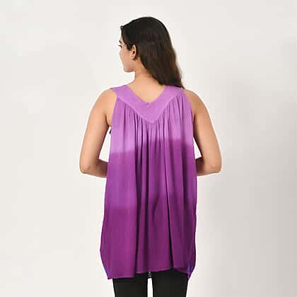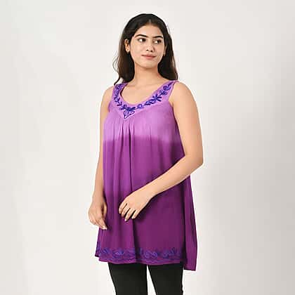 Bring a splash of effortless charm to your everyday wardrobe with this Tamsy Tie-Dye tunic top. Crafted from 100% viscose, this lightweight and breathable tunic drapes beautifully for all-day comfort. The hand-dyed design gives each piece a unique finish, while delicate embroidery along the neckline and hem adds a touch of artistry. Designed in a relaxed fit with a front length of 76 cm and a bust of 56 cm, it flatters every shape. Pair it with leggings or jeans for a breezy, laid-back look that’s perfect for sunny days or casual evenings out.